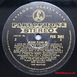 2nd Gold Parlophone Label - type 1. The publishing Credits for "I Saw Her Standing There, Misery, Do you want to know a secret, and There's a Place" are now credited to "Northern Songs Ltd", the brand new company formed to deal with the Lennon-McCartney writing partnership. |